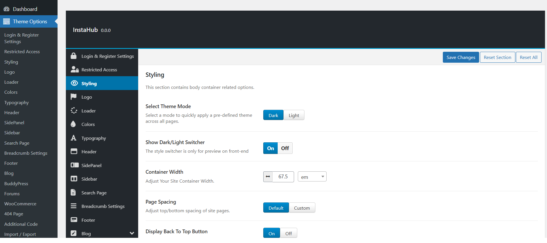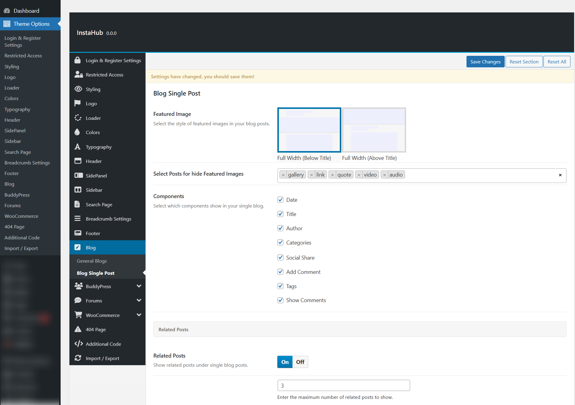 In the Theme Options > Blog , you can set the general blog page with specific styles, including the option for page layout. You can also configure settings for the single blog post page, such as toggling options for displaying details and choosing from different layout styles based on your preferences.