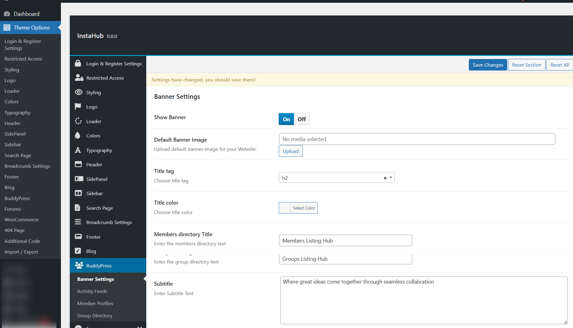 In the Theme Options > BuddyPress > Banner Settings , you can set custom banners for various BuddyPress pages, including the Activity, Members, and Groups pages. This option allows you to customize the banner content, style, and other settings across all these pages.