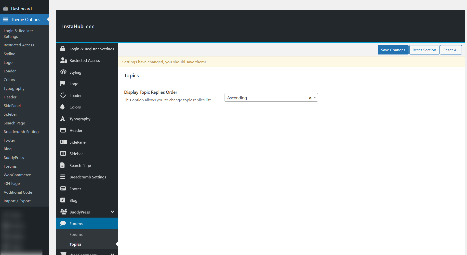 In the Theme Options > Forums > Topics , you can configure the order in which replies are displayed within forum topics. This setting allows you to set whether replies appear in chronological or reverse order, giving you control over the discussion flow.