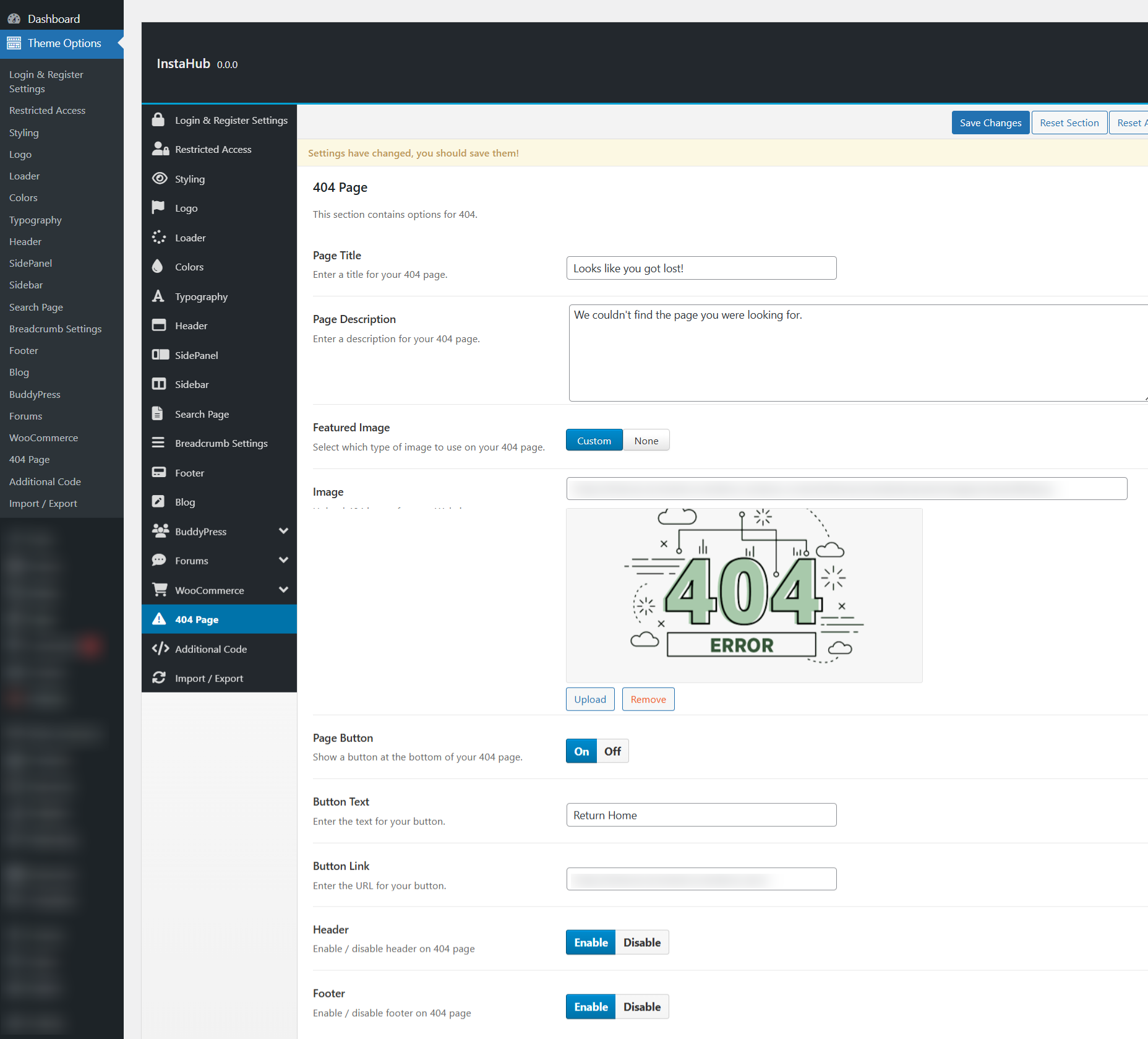 In the Theme Options > 404 Page , you can customize the content and appearance of the "Page Not Found" error page. This option allows you to set a custom message, add helpful links, or design the page to match your site's style, ensuring visitors have a better experience when encountering a missing page.