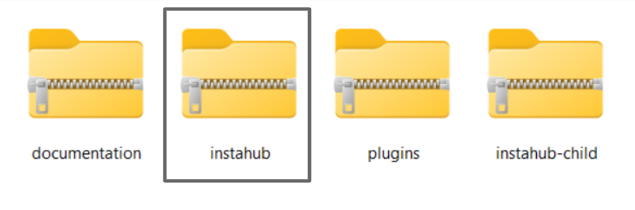 The archive contains: the theme, child theme, plugins, and documentation folders.